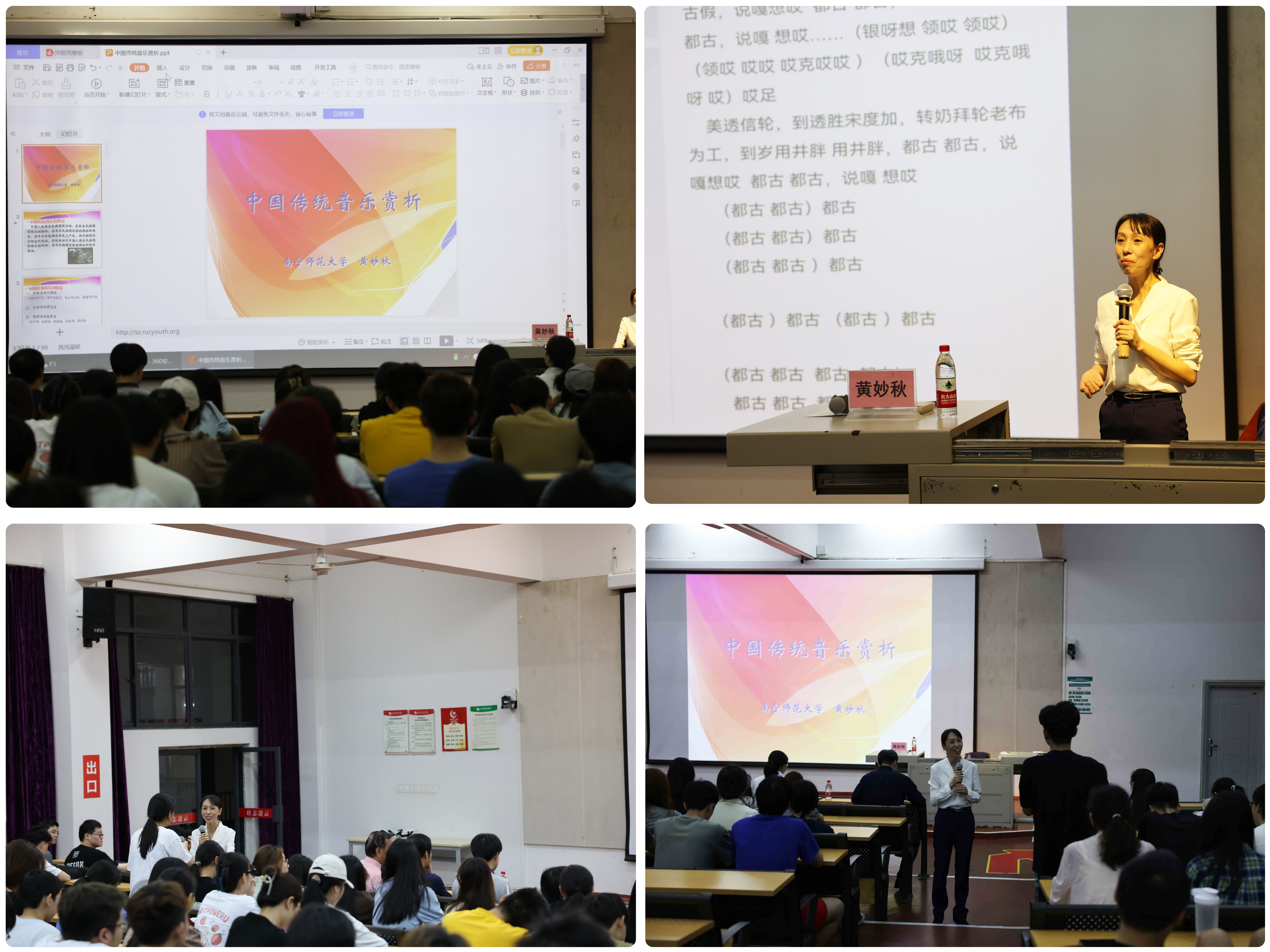 讲座史论结合、互动频繁、妙趣横生、气氛热烈,在黄院长教授带动下,全场师生共唱侗族大歌将授课推向高潮,在载歌载舞中点燃了师生对中国传统音乐的浓厚兴趣,受到了师生们的高度认可。
