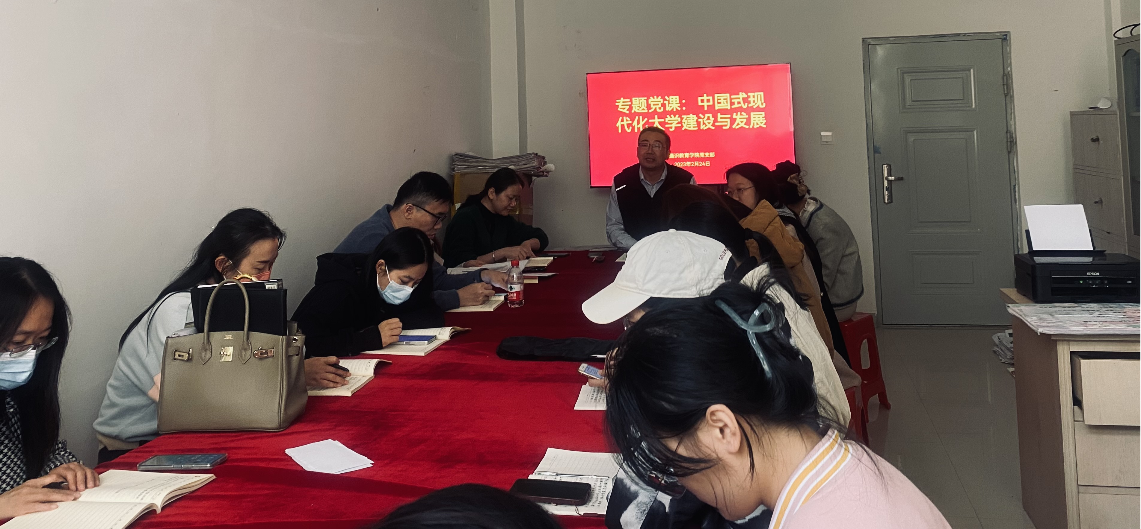 2023年2月24日下午,通识教育学院党支部开展专题党课,深入学习中国式现代化大学建设与发展。会议由周斌同志主持。