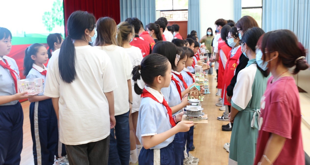 本次活动由北海艺术设计学院建筑与环境艺术学院主办,其主题为“情暖童心 助力成长”。大学生们将自己亲手制作的模型作品从建环模型工坊中拿出,带着建环学子的专业情怀分发给小学生代表们。