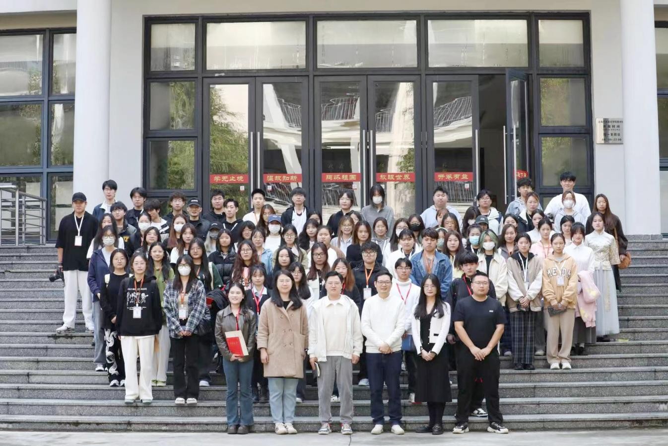大会第五项,全体人员起立奏唱校歌。青春之少年,如朝阳般充满活力,如星辰般闪耀光芒。让我们怀揣梦想,展翅翱翔,在青春的舞台上展现最真实的自我!在校歌下展望,在北艺的阳光下成长。在热烈的掌声中大会圆满结束。最后全体成员移步至图书馆前合影留念。(王宇鑫,王艺博/摄)