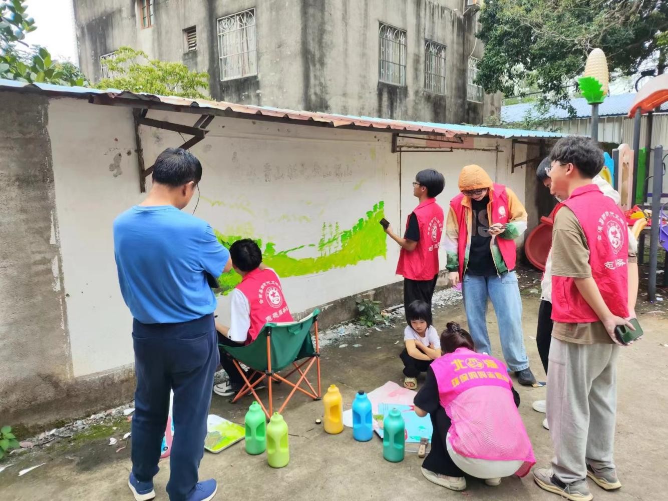 (同学们进行墙绘)