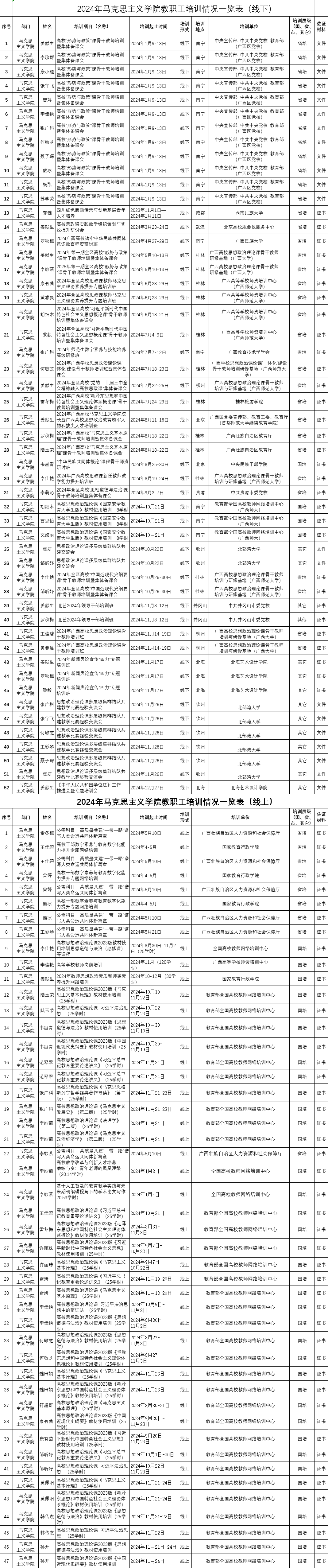 2024年马院教职工培训情况一览表