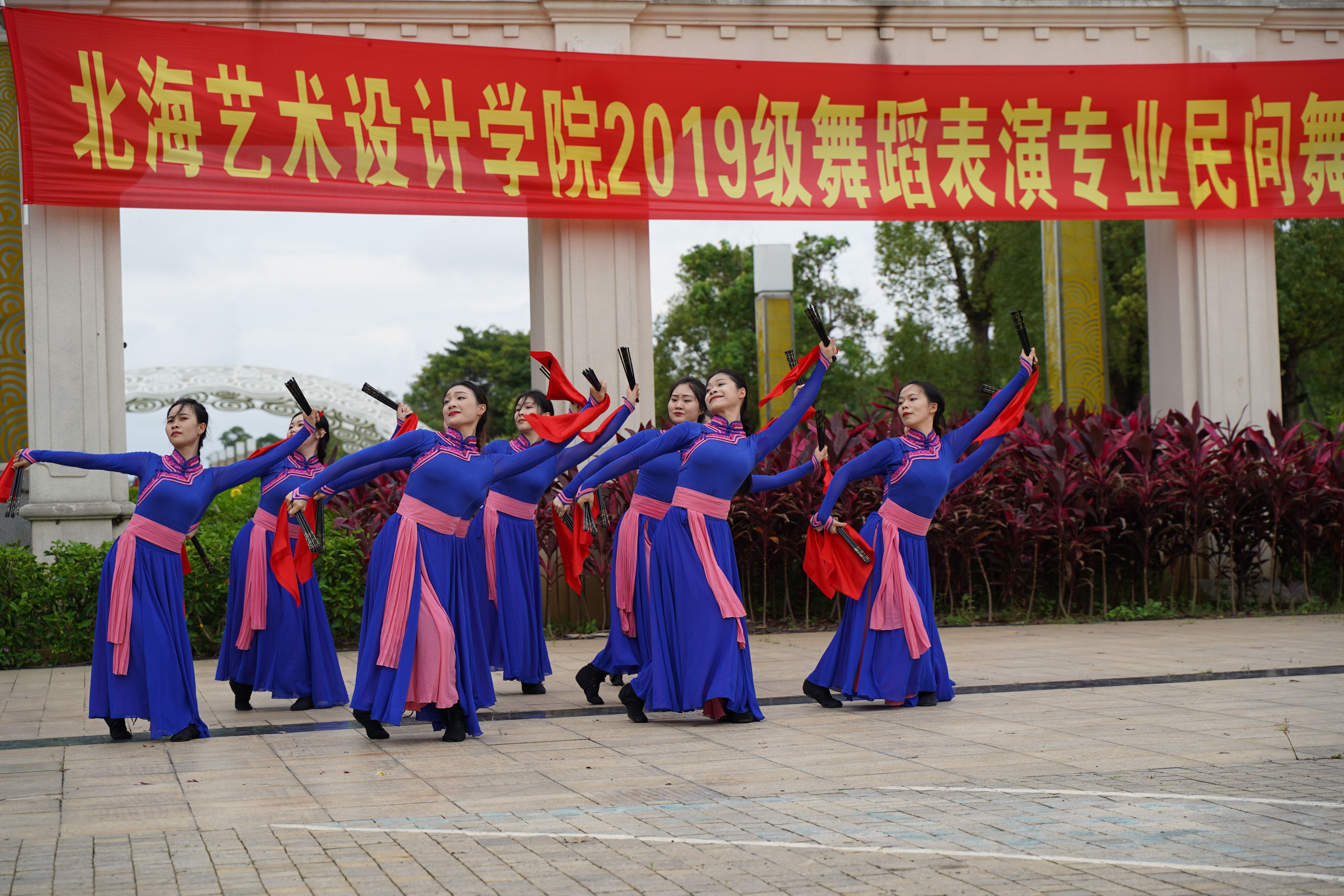 2022年6月9日,北海艺术设计学院人文教育学院2019级舞蹈全体表演专业《民族民间舞》课程结业汇报演出在园博园校区举行。北海艺术设计学院副校长王斌、陶立阳,人文教育学院院院长熊秀峰、副院长李谦,舞蹈表演专业杨建中、殷强教授等观看了演出。