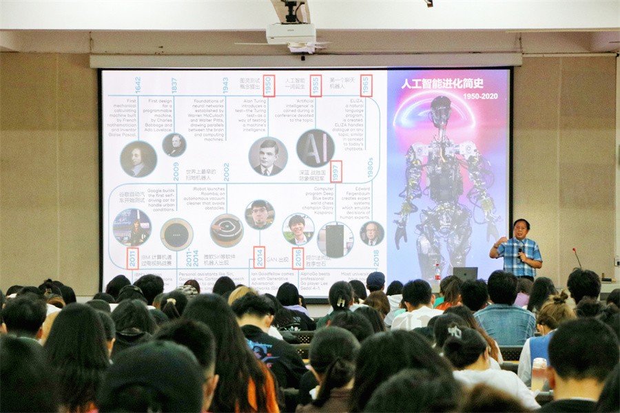 讲座一开始,李四达教授谈到当今世界正经历百年未有之大变局,是一个科技转折的时代,新一轮的科技革命正在影响着每一个人。当今大学生在大学期间所学到的相关知识结构和技能,要能够满足新时代发展的要求,学会以新的视角看待当下的世界发展形势,为个人发展和工作就业做好充分准备。