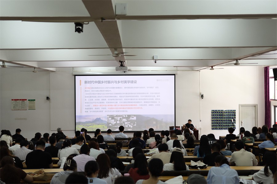 最后,杨冬江教授强调,在新时代中国乡村振兴与乡村美学建设中,乡村振兴是全面建设社会主义现代化国家的重要部分,清华美院团队积极参与新时代“乡村建设”项目,将美术、艺术元素应用到乡村建设中。杨冬江教授还鼓励广大师生践行《新时代中国乡村建设与设计美学导则》,在乡村建设的农业美、建筑美、人文美、水系美、道路美、空间美等方面做出优秀设计,促进乡村建设在设计美学层面的长足发展。