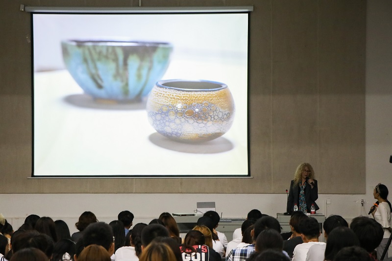 简短的视频让我们快速了解到芬兰迪亚大学设计学院学生的学习生活,他指出我们学生要具有发散性思维与创造性思维。Denise Lynn Vandeville 教授还介绍了“记忆+创新”、“专业+实践”的新兴教学模式和学生的学习领域和绘画方式。芬兰迪亚大学主张学生自主学习,自我选择自己所要学的东西。他通学生的优秀作品介入,展示了各个设计专业的工作室和学习环境。Denise Lynn Vandeville 教授说“最好的艺术就是考虑他人”。