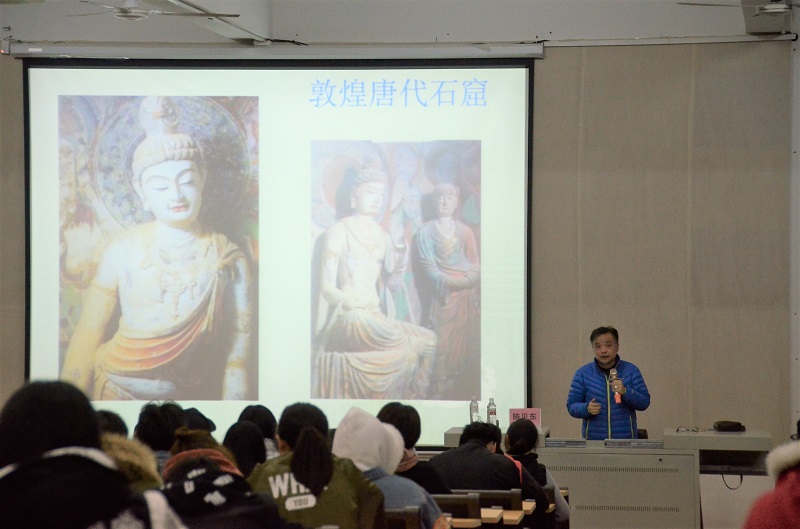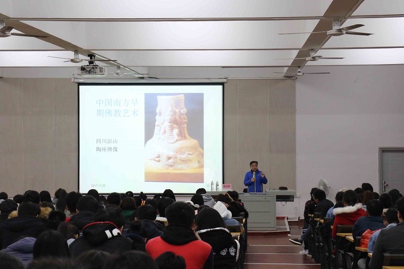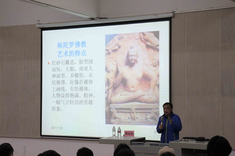2017年11月25日晚7:30,在西校区伦理楼107,江苏大学艺术学院教授、硕士研究生导师、美术学学科带头人、民间艺术研究所所长,陈见东教授莅临我院,为北艺师生带来了一场题为《佛教雕塑与丝绸之路艺术》的精彩讲座。