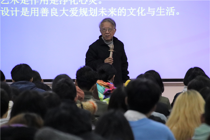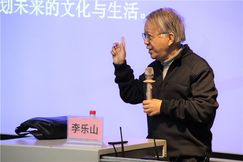 讲座开始,李乐山教授和同学们积极进行交流,并教导同学们树立正确的价值观:做对社会有贡献的人,在追求成功的过程中始终要心怀大爱,要坚信吃得苦中苦,方为人上人的道理。艺术可以净化心灵,设计是用善良大爱规划未来。同学们还要学会严于律己,宽以待人,在这个利益驱使的时代,要坚持不忘初心,砥砺前行。