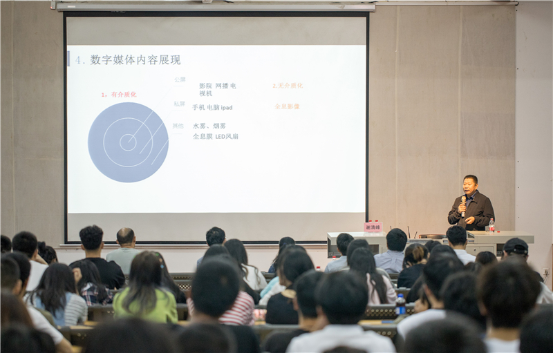 谢清风先生讲解了数字媒体的含义、相关种类以及传播方式。他认为现今的数字媒体可以融合各种专业,各种领域都离不开数字媒体。在现今的市场上,注重对创意、传承性的追求,我们还要对中国文化的属性有准确的认知。今后8k技术的产业链与消费链将会影响未来审美观念、虚拟形象,其重要性不言而喻。