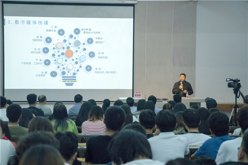 2019年5月10日晚上19:30分于我校西校区伦理楼107,谢清风先生为我校师生带来一场题为《数字媒体产业业态分析》的精彩讲座。本次讲座由副校长王斌主持。