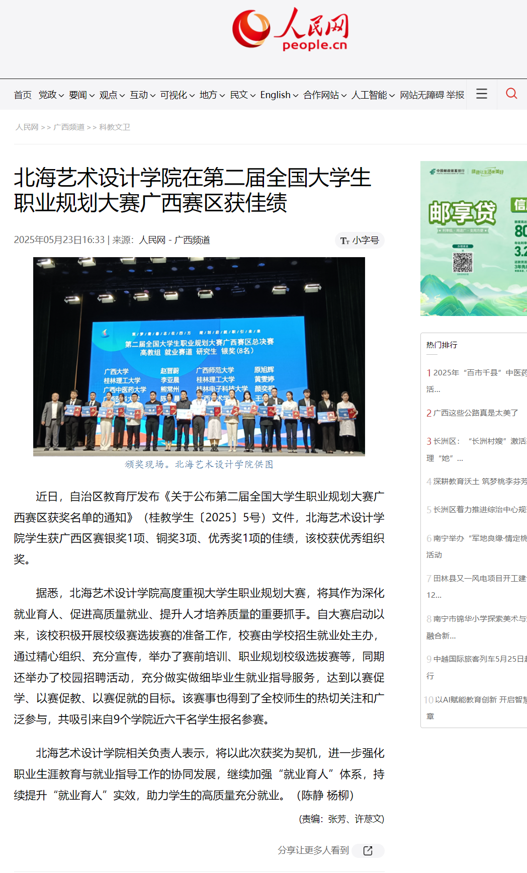 人民网:北海艺术设计学院在第二届全国大学生职业规划大赛广西赛区获佳绩