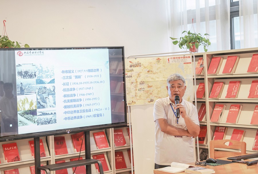 最后,他希望,同学们能够时刻铭记历史,大力弘扬长征精神,不断结合专业知识,创造更多融合红色元素的优秀作品,进一步地展现我们北艺学子的良好精神风貌。(黎毅/摄)