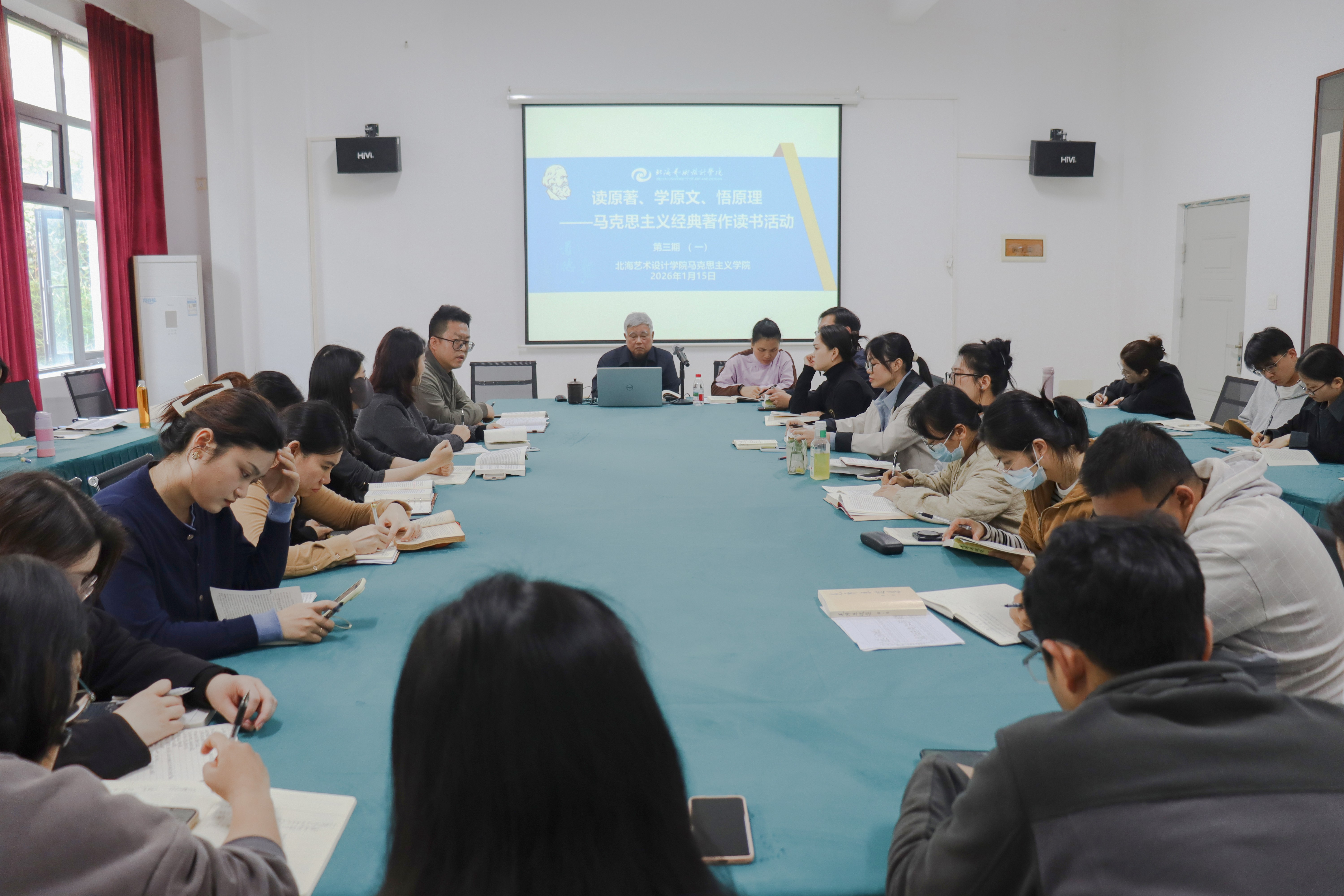 马克思主义学院此前已成功举办两期马克思主义经典著作读书活动,均采用老教授导读模式。第三期读书活动创新形式,转为以中青年教师为主体开展读书分享,并将作为常态化学习机制持续开展。学院将不断优化活动形式、丰富学习内容,着力提升思政课教师队伍的马克思主义理论素养,为高质量开展思政教学奠定坚实基础。(黎毅/摄)