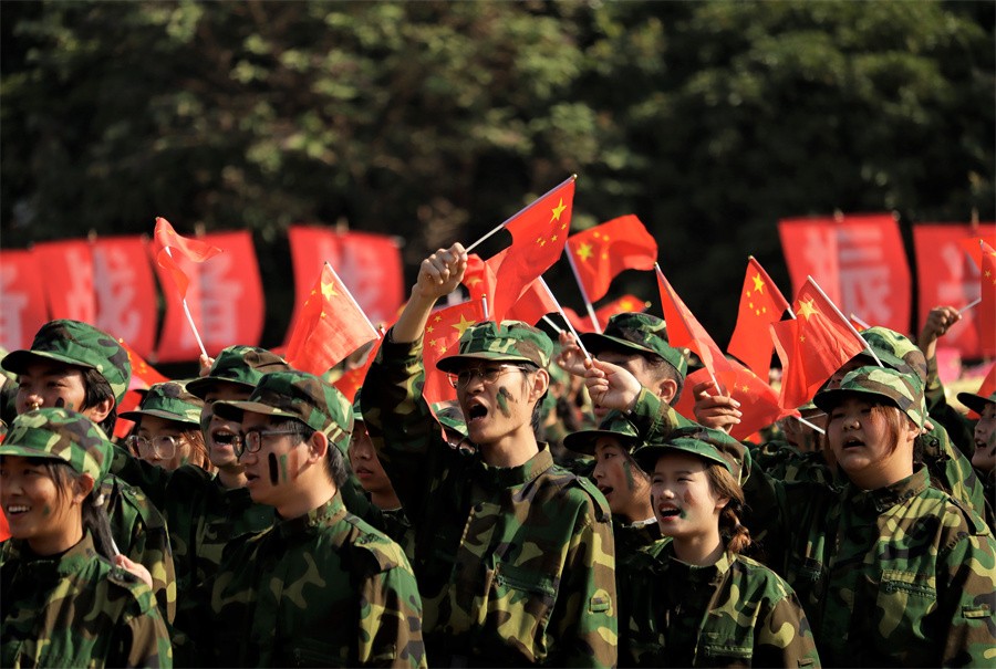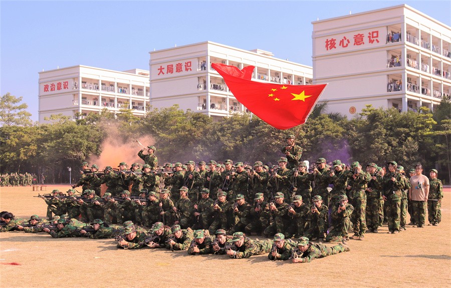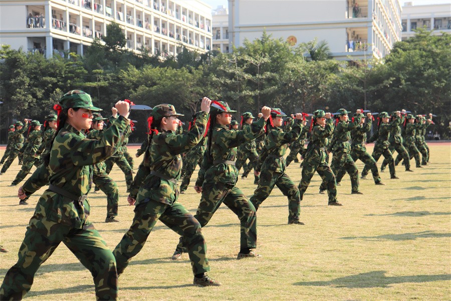 校长卢新华一句“按计划进行”话落,军训成果展示汇演正式开始。