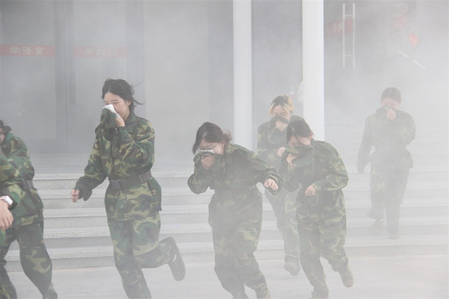 演练正式启动后,模拟我校2号宿舍楼302室突发火情,现场迅速产生“烟雾”。宿管人员接到报警后立即切断电源引导学生捂住口鼻、弯腰低姿,按照预定的疏散路线和逃生指示标识,快速有序地向指定安全区域集结。整个疏散过程各部门协同配合紧密,现场组织严密、秩序井然,充分展现了师生良好的应急反应能力和纪律性。