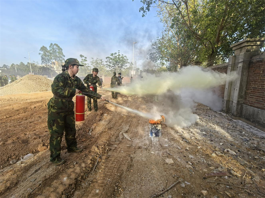 消防技能培训环节中,学校保卫处处长结合校园实际情况,分别从校园常见火灾隐患,详细阐述了火灾的成因、预防措施以及初起火灾的扑救方法,并重点讲解、示范了穿戴过滤式消防自救呼吸器和使用干粉灭火器的正确操作步骤。实操体验中,师生亲身体验了使用灭火器扑灭油盆火的过程。通过理论与实践的结合,师生不仅掌握了灭火器材的使用技巧,更对有效扑救初起火灾的应急措施有了直观和深刻的理解,进一步提升了消防安全实战能力。