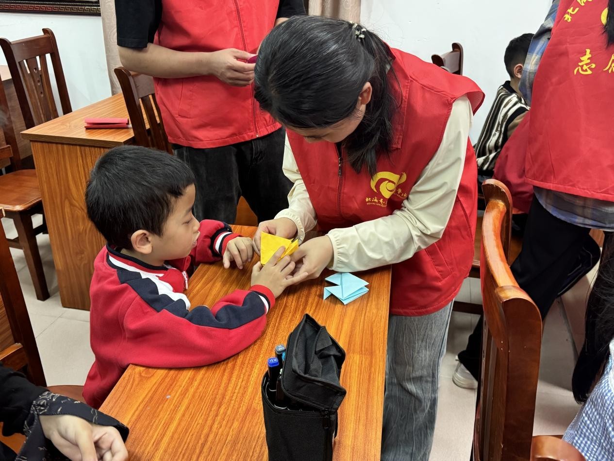 手工课堂上,志愿者引领孩子们踏上一场艺术探索之旅。孩子们在彩泥的塑形中学会色彩与形态的创新搭配;在折纸折叠与树叶拼贴中感悟自然的奇妙与魅力;在垃圾分类箱制作中学会垃圾分类知识。志愿者鼓励小朋友大胆尝试,用双手创造属于自己的艺术作品。别开生面的手工课堂不仅展现了小朋友们的才华和创意,还传递了绿色环保的理念。