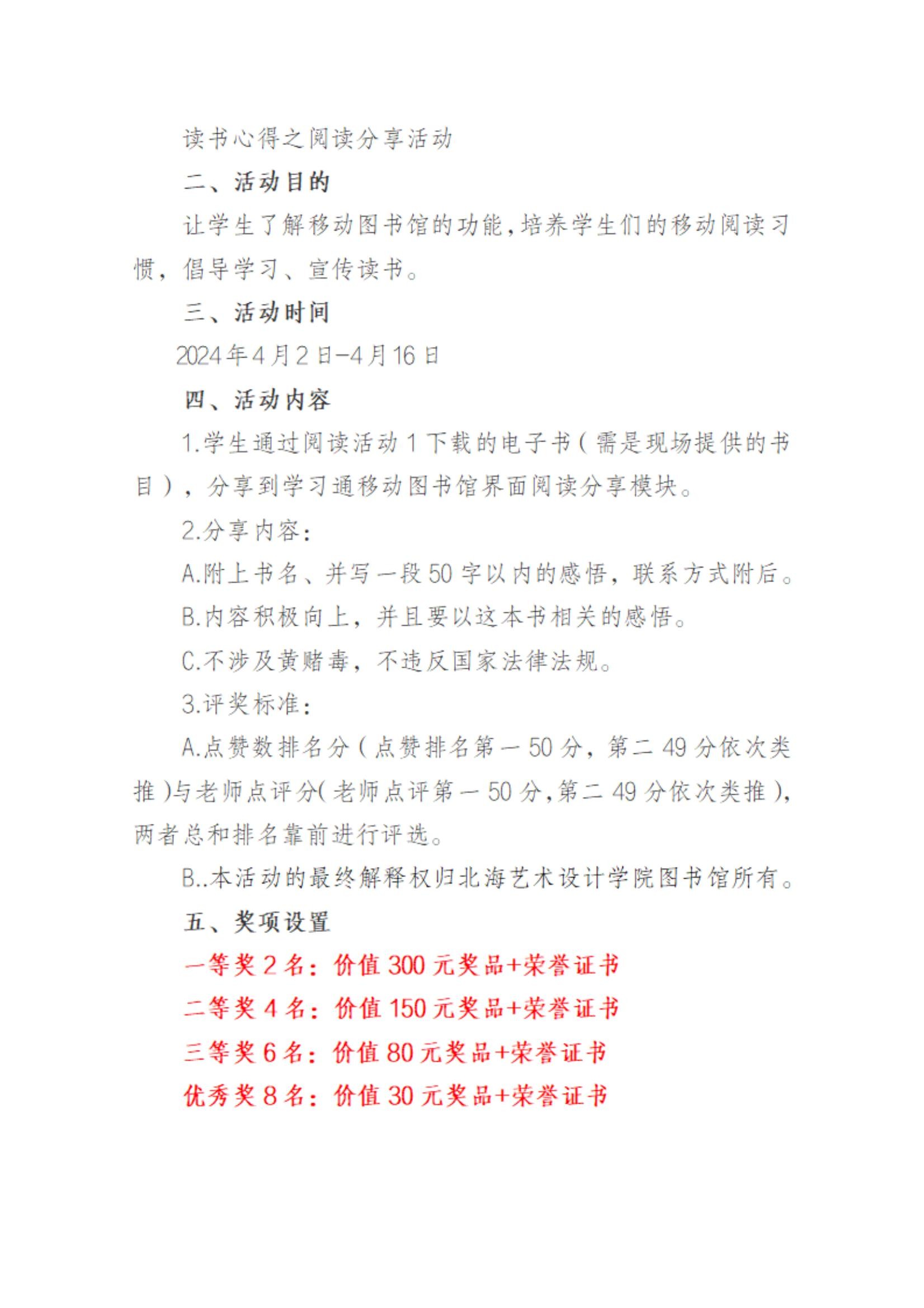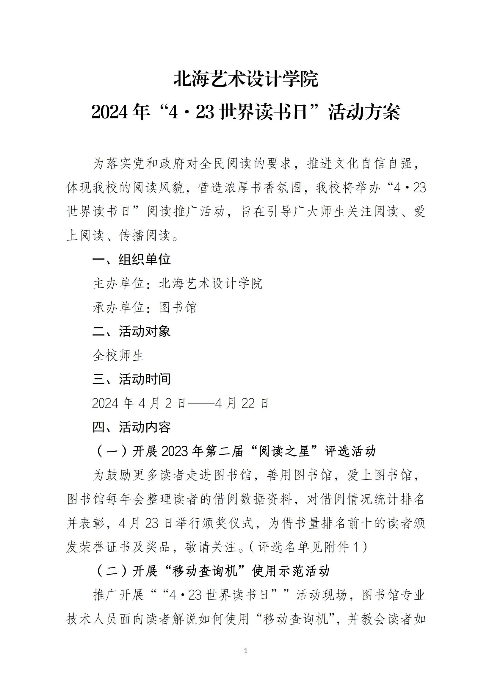 北海艺术设计学院 2024年“4·23世界读书日”活动方案