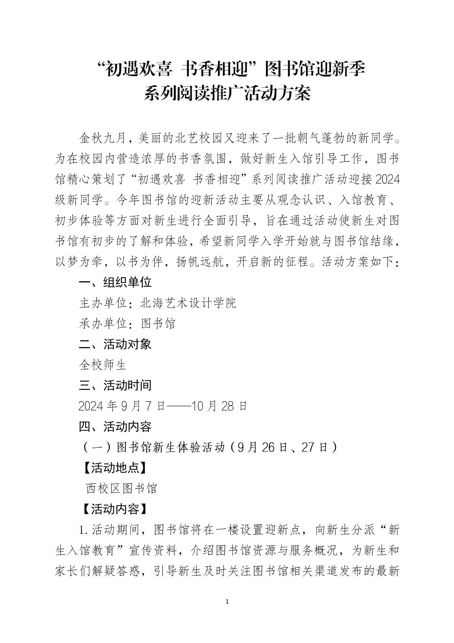 “初遇欢喜 书香相迎”图书馆迎新季系列阅读推广活动方案