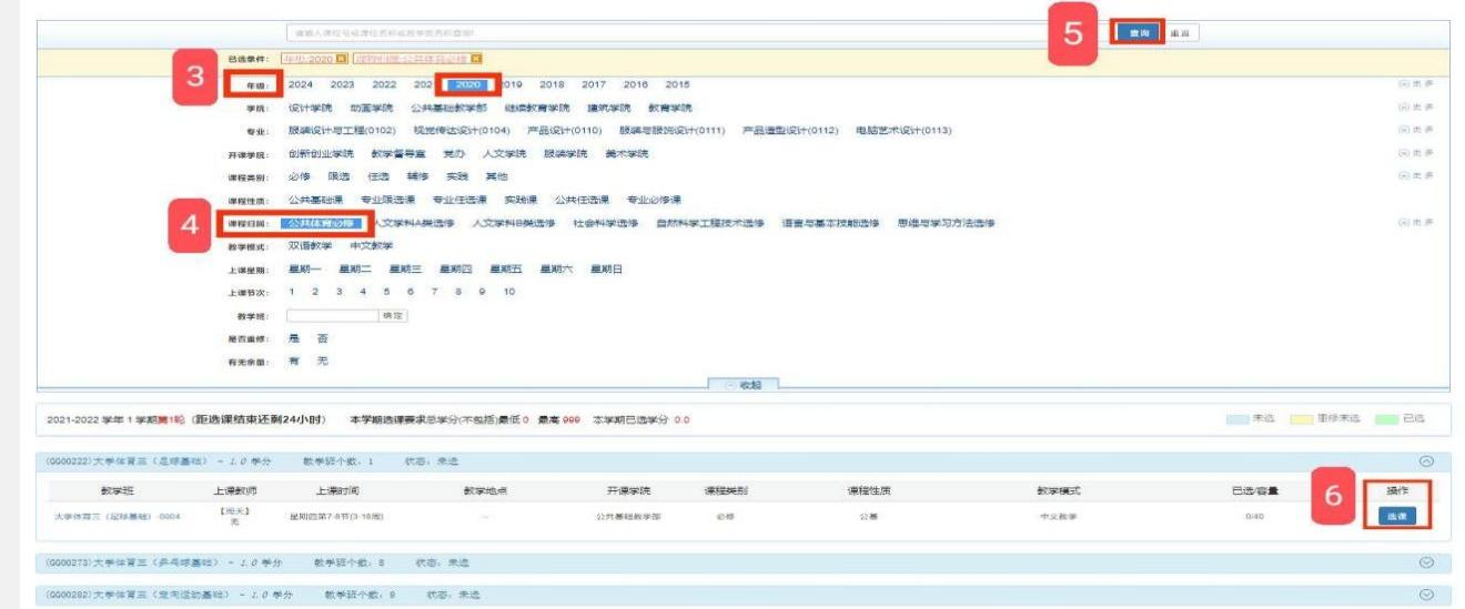 根据《全国普通高等学校体育课程教学指导纲要》(教体艺200213号)的规定,《大学体育》是本科学生的公共必修课。为丰富课程内容,拓宽学生学习体育运动的范围,提高体育课教学质量,根据人才培养方案要求,学校决定2024级学生《大学体育()》课程采用先网上选课再上课的形式进行。现将有关选课事宜通知如下: