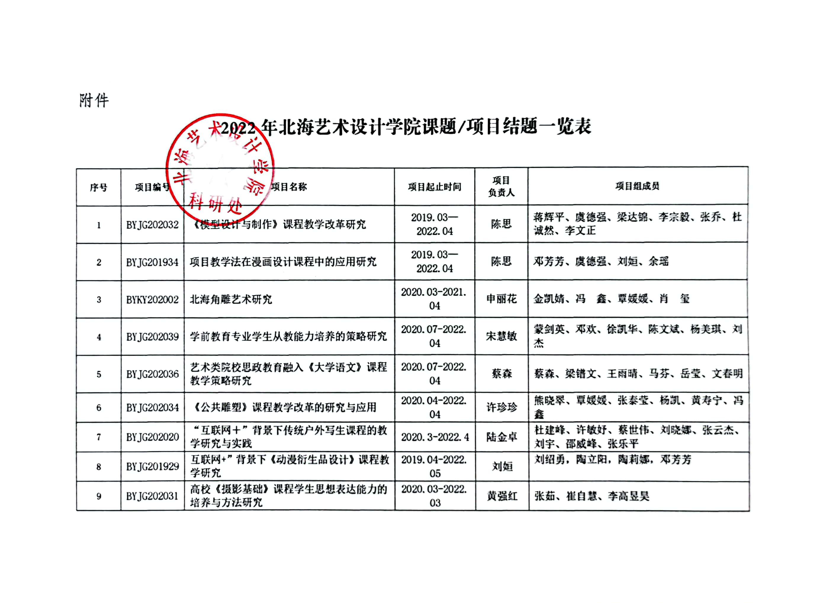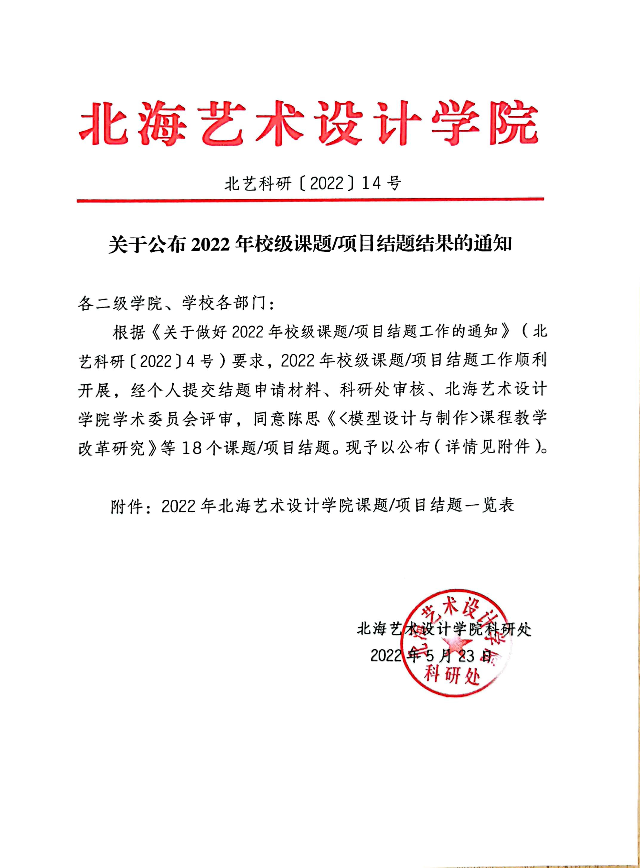 北艺科研〔2022〕14号 关于公布2022年校级课题项目结题结果的通知