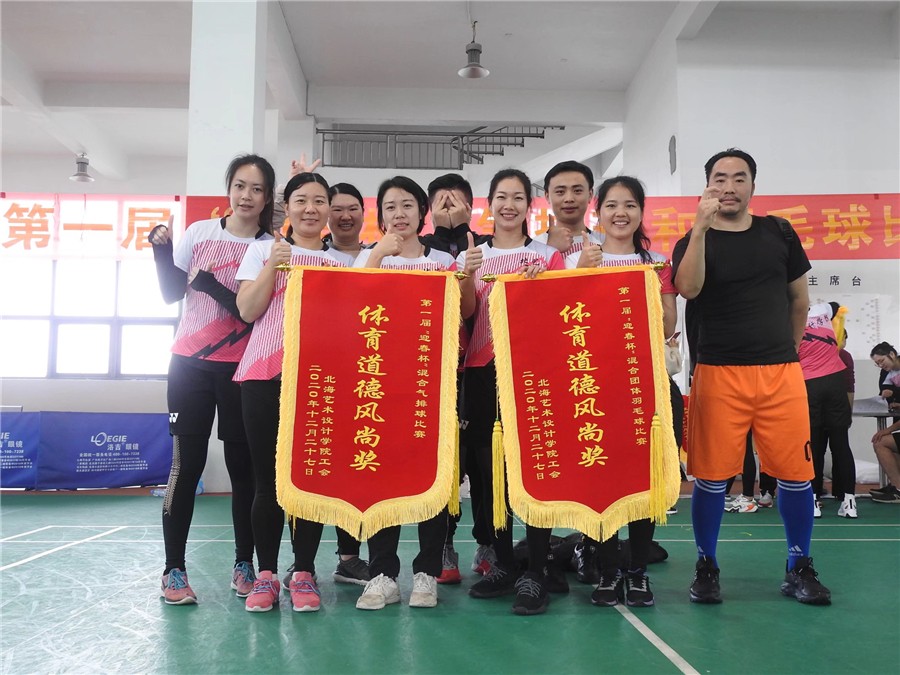 为响应国家全民健身的号召,丰富全校教职员工的文化体育生活。2020年12月26、27日,我校在西校区体育馆三楼举办了北海艺术设计学院第一届“迎春杯”教职工气排球和羽毛球比赛。学校党委书记李高南、校长卢新华、校长助理刘宗华、设计学院常务副院长李林平、美术学院常务副院长龚为、人文学院常务副院长李水亮、服装学院常务副院长孙竹青、环境艺术学院副院长王明森出席了活动,学校各二级学院、行政、教学部组织教师代表参加了比赛。本次活动由工会办公室主任周斌老师主持。