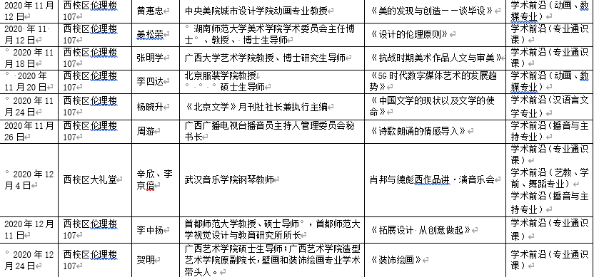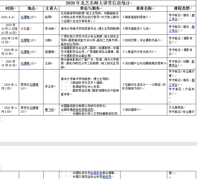 2020年北艺名师大讲堂信息统计