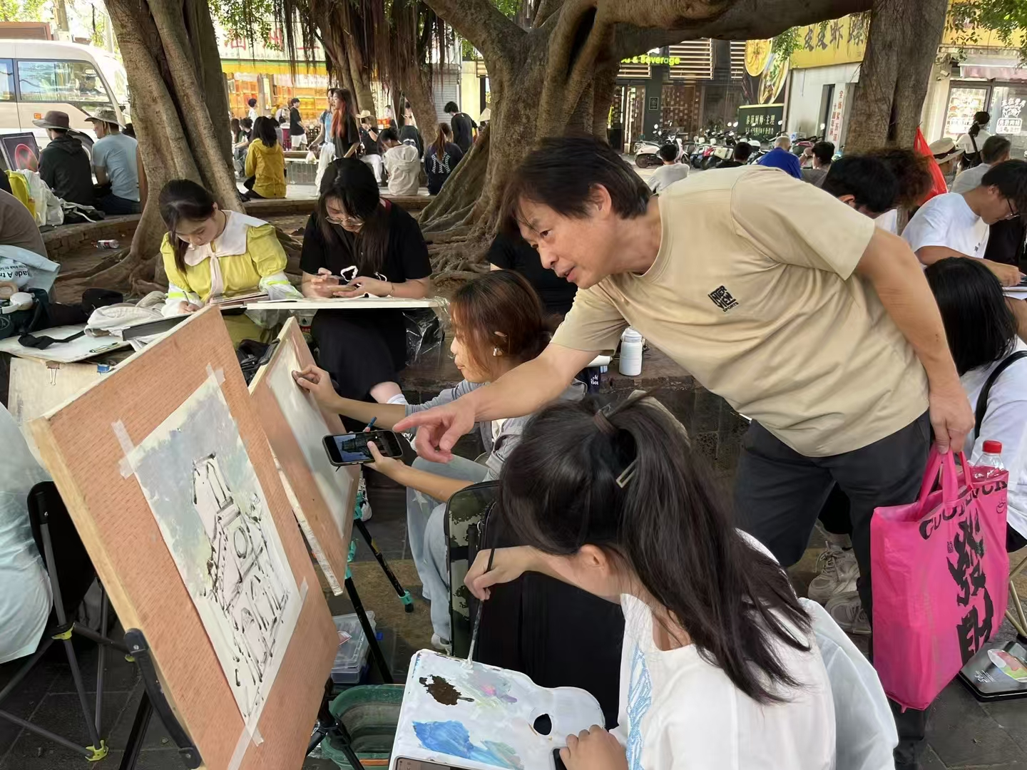 在教学活动实施过程中,学院组织管理得力,师生严格遵循教学计划,有序前往红色广场开展开展了爱国主义教育活动,再依次去到旧码头、教堂等实践点开展各项教学活动。学生在旧码头、教堂等实践点捕捉素材时,教师也积极巡查并给予专业指导。白天写生任务结束后,师生不顾劳累,继续开展晚间集中讲评教学活动,讲评方式多样,包括教师讲评、学生互评、学生自评等。教师客观全面分析写生作品,肯定学生付出,提出进一步完善和提升建议,学生们积极发表见解,现场气氛热烈,彰显出我校课程较高专业水准和深度,为学生提供了宝贵学习交流机会。