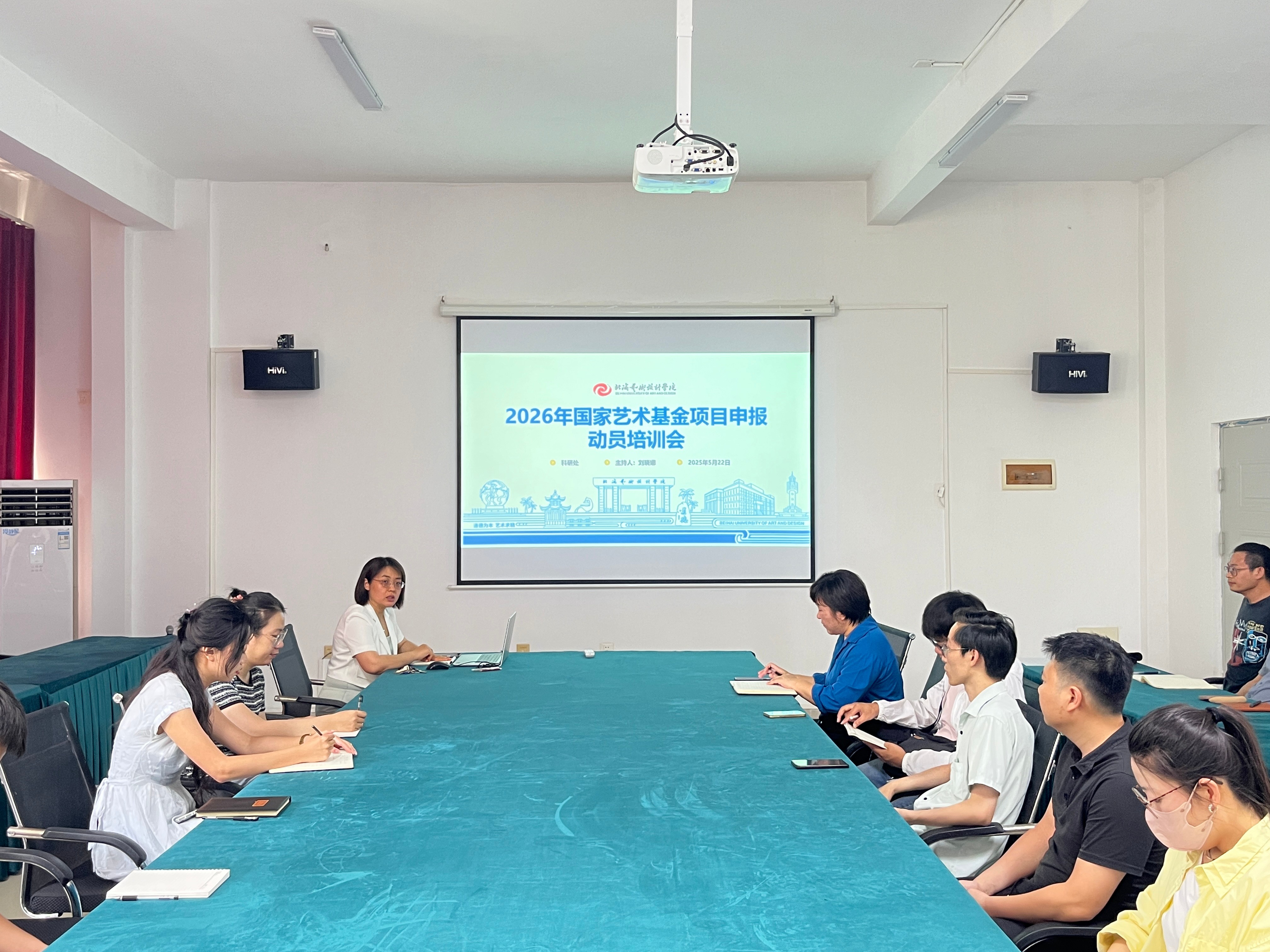 2025 年 5 月 16 日,我校参加由自治区文化和旅游厅主办,广西民族文化艺术研究院、广西图书馆承办的《2026 年度国家艺术基金资助项目申报辅导会》。