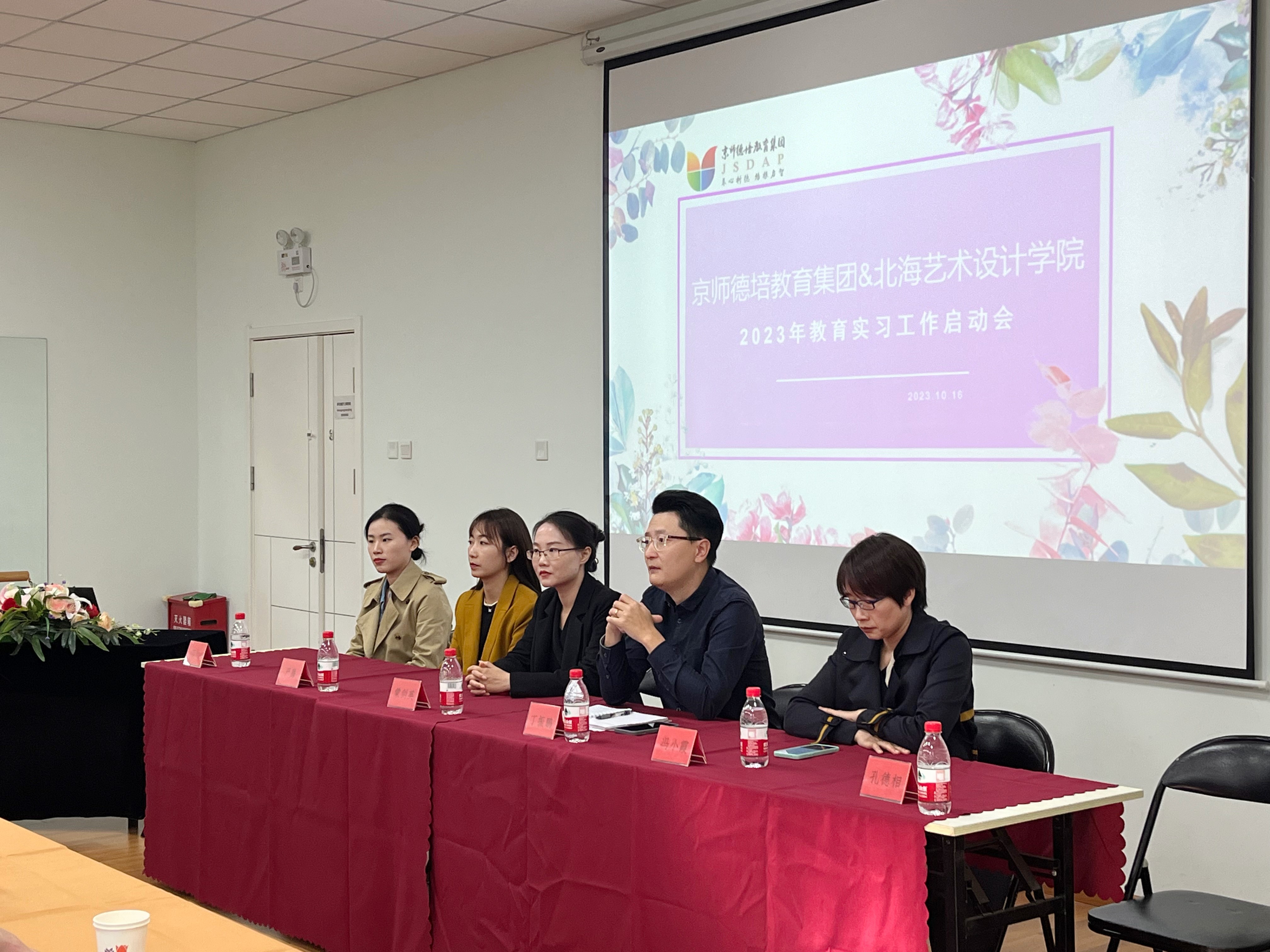 京师德培教育集团总园长丁振鹏、人文教育学院党总支副书记邓欢、北京实践基地办公室副主任严腾、学前教育教研室主任蒙剑英、实验室副主任冯小霞、2020级辅导员孔德相、京师德培教育集团各园长,以及2024届学前教育专业在该集团集中实习的39位同学出席会议。会议由京师德培教育集团人事负责人马艾萍主持。