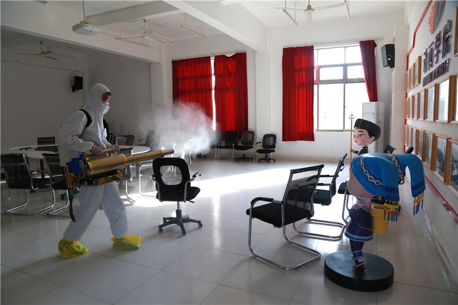 开学复课后,我校还将一如既往做好环境清洁卫生工作,加强日常预防性消毒,努力将防疫工作制度化、常态化、规范化,把好清洁消毒关,筑牢防控安全墙,为全体师生营造一个安全、健康的工作学习环境。