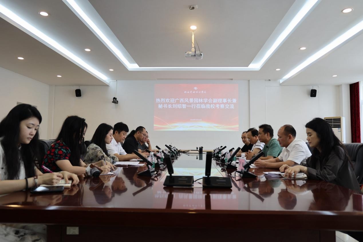 2024年4月26日上午,广西风景园林学会副理事长兼秘书长刘绍智等一行专家到我校开展相关考察交流活动。交流座谈会上,双方就专业学科建设、教学科研、招生与就业、产业学院、技能竞赛、育人合作等内容展开了深入交流。