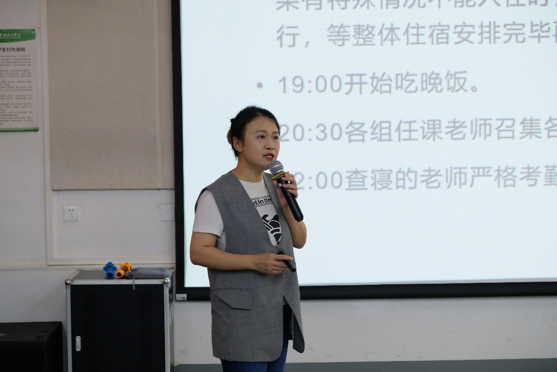 会上,肖院长详细介绍了三江侗族的建筑特色与风土人情,并展示了教授们在当地创作的优秀作品,以拓宽学生艺术视野。同时,她就具体行程安排作了详细说明,并着重强调了交通、饮食及户外写生等各方面的安全须知。