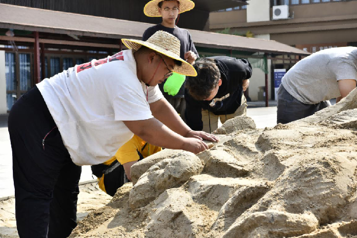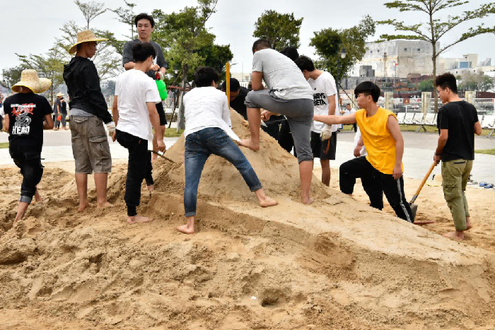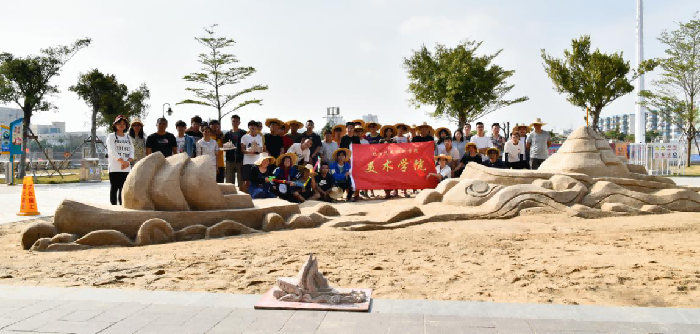 经过全体师生的共同努力下和港口工作人员的配合中,圆满完成了沙雕艺术作品的创作,并得到了港口的认可,为之后的活动奠定了基础。 (金凯靖 摄)