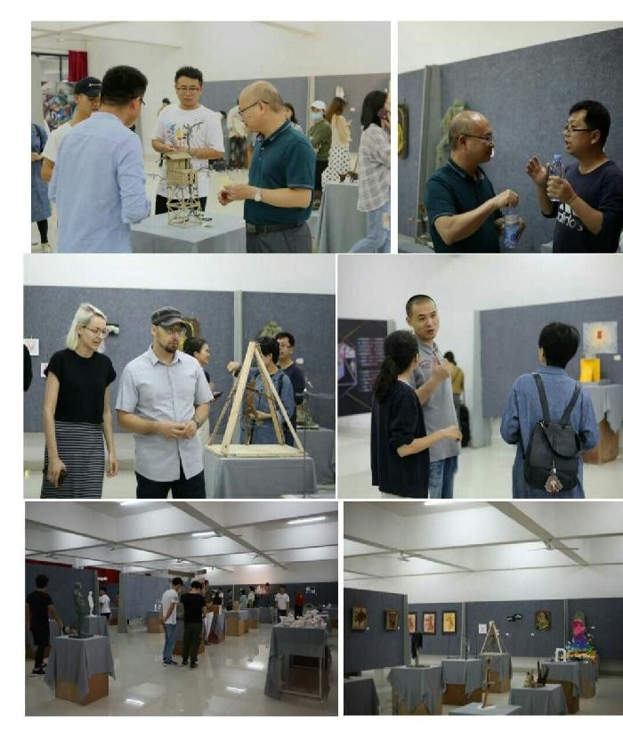 开幕式圆满结束后,参加开幕式的领导、嘉宾及师生进入展厅观展,学院领导与老师们一起参观展览、探讨学科的创新,同时与学生探讨他们的作品。