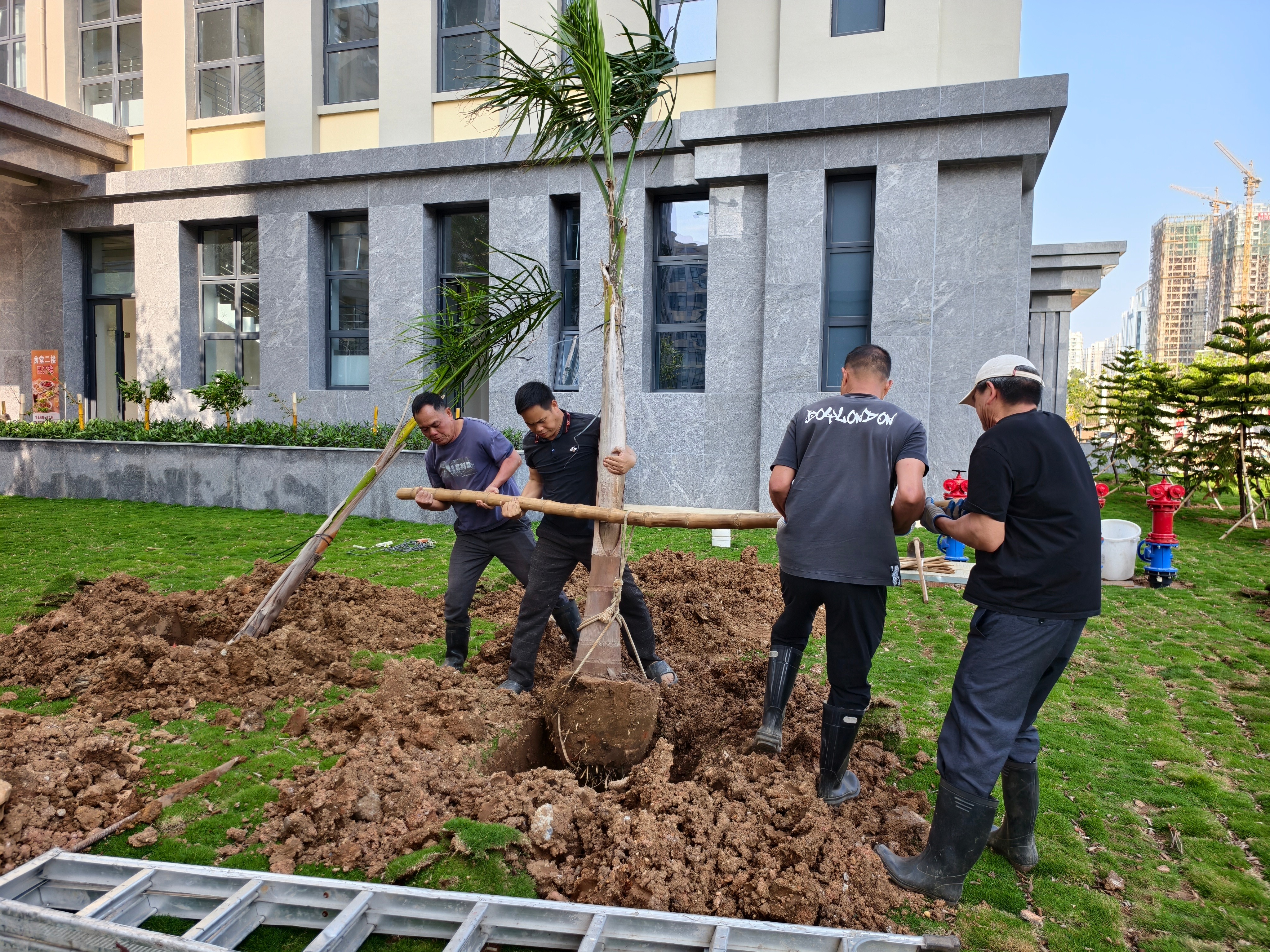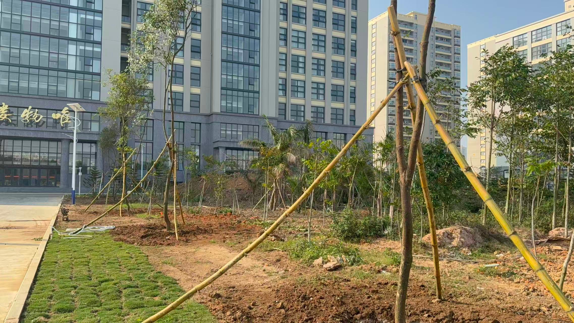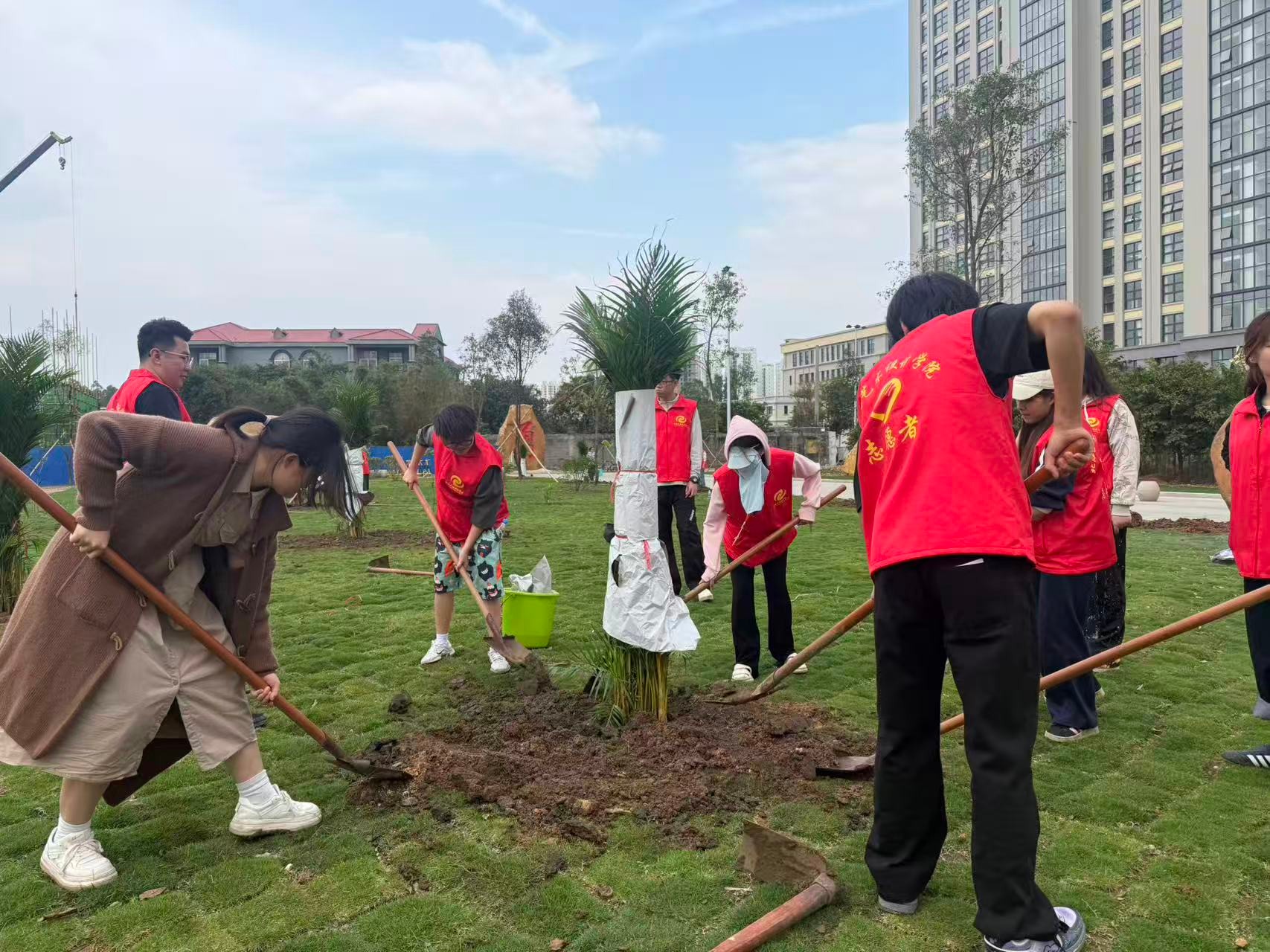 经过一下午的辛勤劳作,22棵香樟树、10株榕树、8棵大皇椰、32株散尾葵迎风挺立、错落有致,在午后阳光下焕发出勃勃生机。香樟树形雄伟、四季常青;榕树枝繁叶茂、冠盖如伞;大皇椰挺拔秀丽、富有热带风情;散尾葵姿态潇洒、叶色翠绿。多种苗木的搭配种植,进一步丰富了南区绿化的层次感和景观效果,为师生营造更加优美宜人的校园环境。