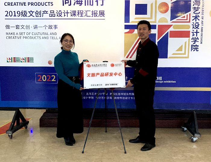 学院以“向海而行”为主题,深挖北海地域特色文化,将“一带一路”海丝路文化、合浦汉代文化、疍家文化、南珠文化、涠洲岛海洋生态文化、红树林湿地生态文化融入课程开展文创产品设计,具体落实立德树人根本任务,将价值塑造、知识传授和能力培养三者融为一体。同时,学院与新绎旅游合作成立“文旅产品研发中心”,文旅产品的研发助力了北海市现代滨海旅游城市建设与北海海洋文化旅游产业发展。