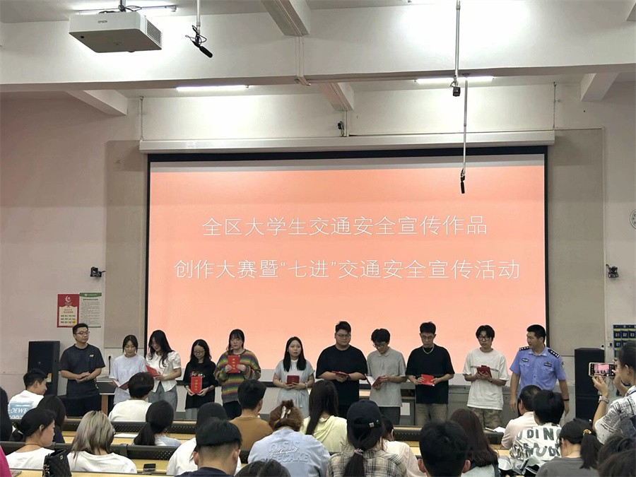 在自治区公安厅、教育厅、共青团广西区委联合组织开展的2023年大学生交通安全宣传作品创作大赛中,我校学生荣获平面作品类三等奖1项,优秀作品奖5项;短视频类一等奖1项,二等奖1项,三等奖1项;学校荣获“优秀组织奖”。在此次活动中,现场展播了获奖学生的作品。学生工作处副处长马啸、北海市公安局交通警察支队法制宣传大队副大队长金子为获奖学生进行颁奖。