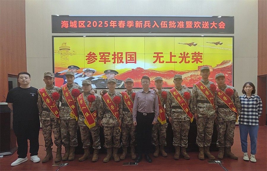 3月13日下午,北海市海城区举行2025年春季新兵入伍批准暨欢送大会,我校副校长何煜出席大会。