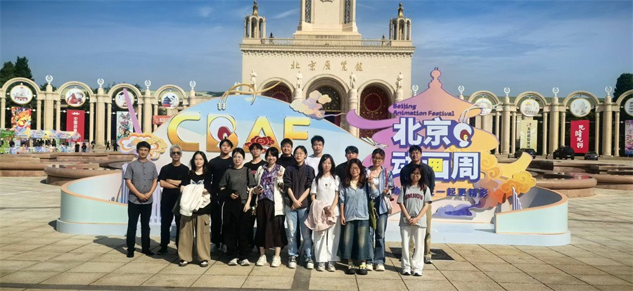 近日,由北京市广电局主办的“北京动画周”在北京展览馆开幕。为拓宽学生专业视野,搭建理论与实践的桥梁,我校影视动画学院副院长吴锡红、院长助理刘海涛于9月26日带领2022级动画专业学生前往观展,完成了一场从“视觉观看”到“思维拆解”、从“技术触摸”到“文化解码”的调研,沉浸式感受动画行业前沿动态与高校创作风采。