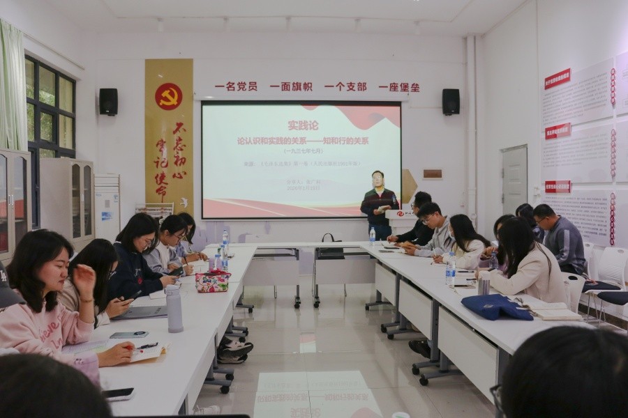 1月19日,马克思主义学院在西校区行政楼103红色驿站举行第三期马克思主义经典著作读书第三次活动。活动由马克思主义学院副院长张宇飞主持。马克思主义学院习近平新时代中国特色社会主义思想概论及国家安全教育教研室主任张广科副教授以《实践论》为基础,作了题为《实践论:论认识和实践的关系——知和行的关系》的分享,马克思主义学院全体中青年教师参加活动。