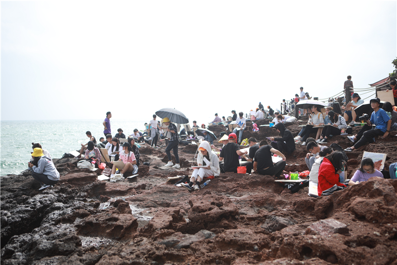 依据教学安排,北艺师生们先后到达火山口公园、码头、天主教堂进行写生实践活动与艺术创作。在各领导和教师的带领下,同学们用相机、手机共同记录下涠洲的自然美景与人文景观。与此同时,加深了同学们对涠洲岛的特色与民族风情及其历史渊源的了解与认识。也让同学们感受到艺术与自然之间的联系,从而更好的进行创作。