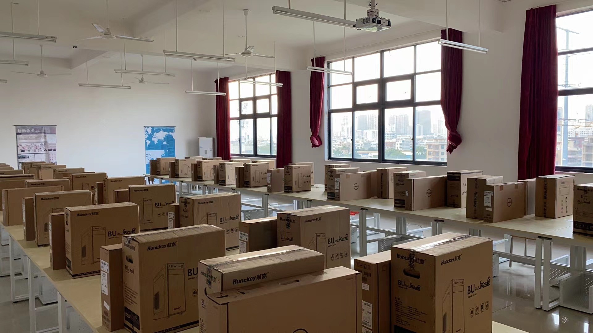 学校西校区公德楼,伦理楼新增20个电子教室,东校区综合楼新增4个电子教室,共960台新电脑,为了电子教室能尽快投入使用,设备与信息处老师加班加点安装新电脑,接入网络,安装系统、机房管理软件,为学校教育教学积极贡献自己的力量。