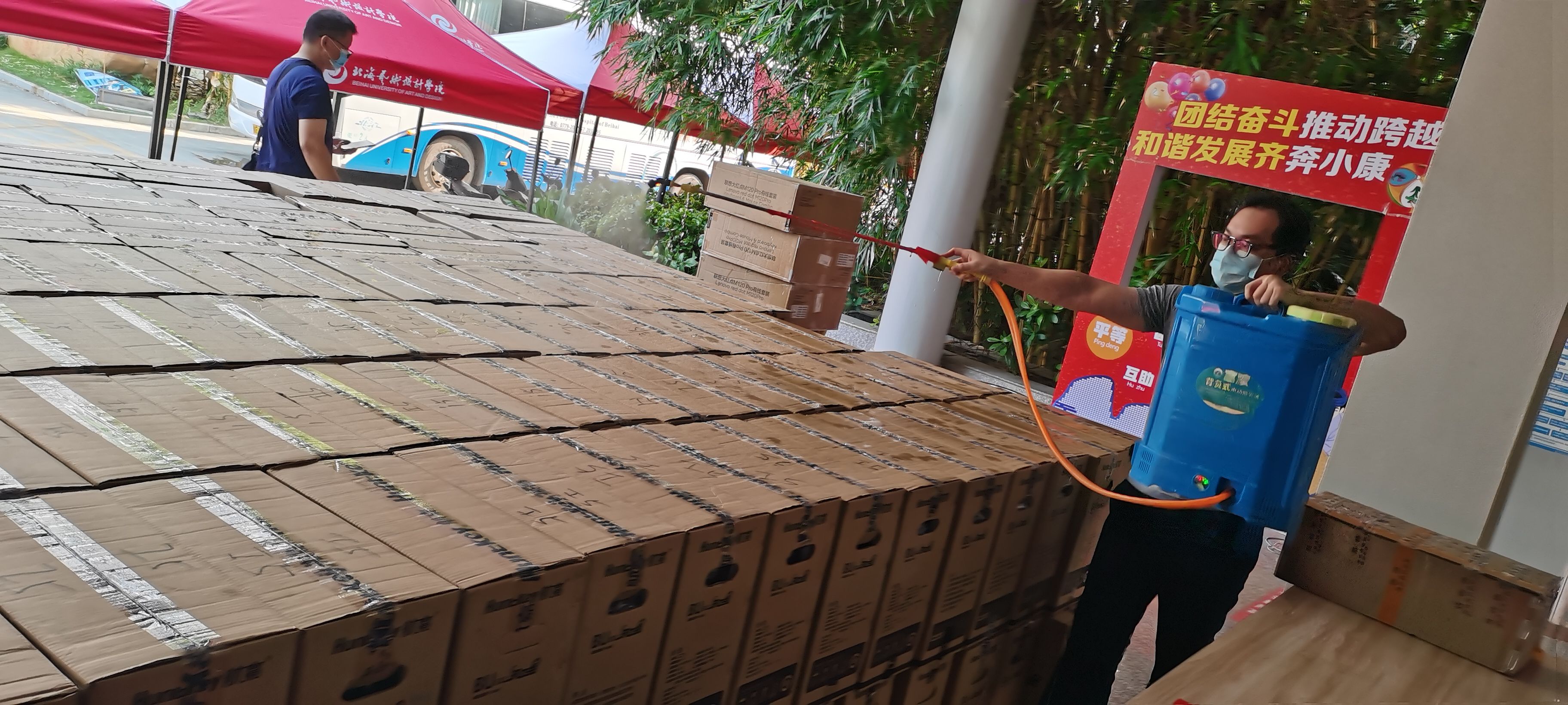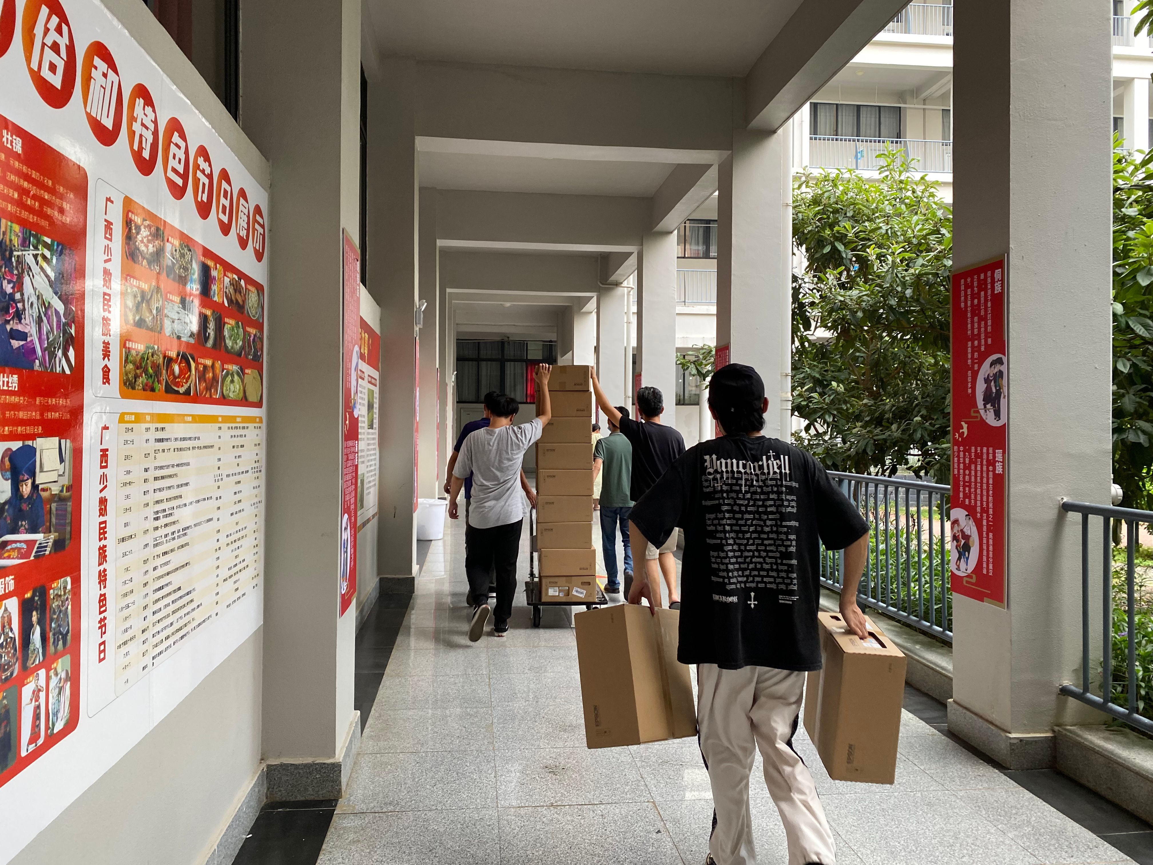 2022年秋季学期,学校采购了大量新电脑等设备,设备与信息处老师们忙碌工作,搬运、消杀、拆箱、安装、配置,忙得不亦乐乎,汗水浸透了衣衫。