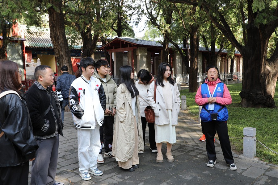 在孔庙和国子监博物馆的参观过程中,学生认真听取讲解员对中国古代科举制度的详细介绍,了解了科举考试的流程、考试内容以及科举制度对中国古代社会的影响。随后,师生一同参观了国子监的讲堂、藏书楼等历史建筑,深刻感受古代学府的学术氛围和教育理念。通过实物展示和历史场景的再现,学生对中国传统文化都有了更加直观的认识。