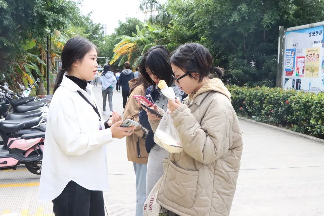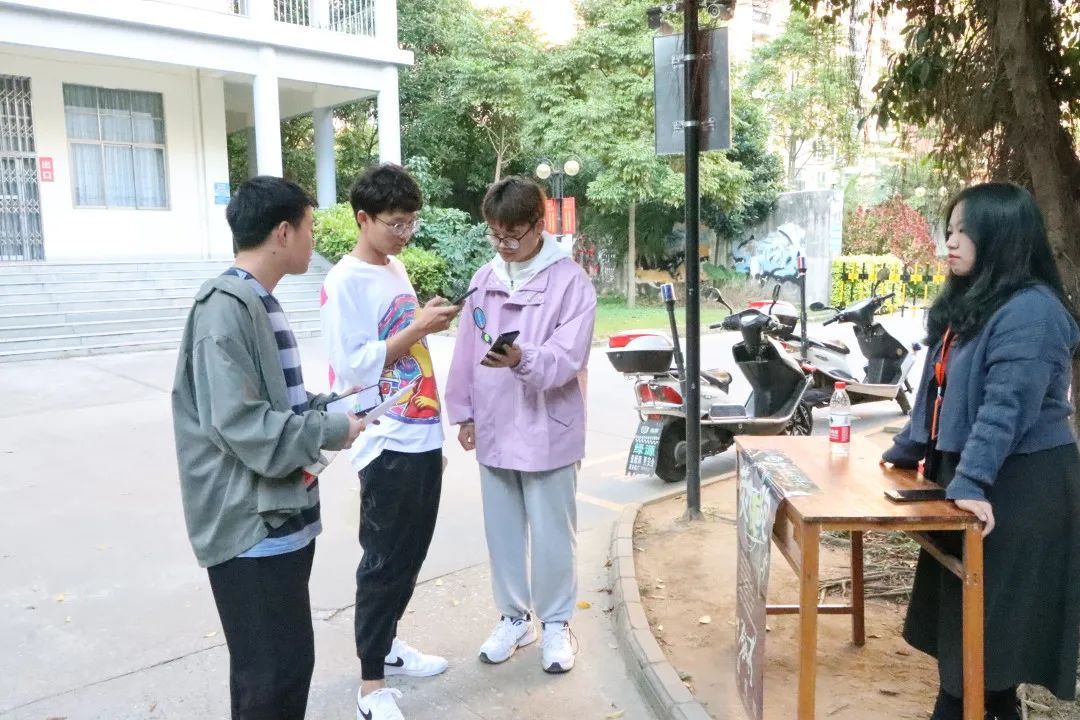 荧光夜跑是参与者利用荧光装备随性装扮,与其他参与者一起盛装出席,进行无排名之分,无速度之争的运动,沿途欣赏赛区特制的荧光装置艺术,是一场结合荧光元素的夜跑。为了让同学们更好的了解此次活动并且积极参加,工作人员耐心地为同学们解答疑惑。 在工作人员对活动进行了详细的介绍后,同学们对活动的理解也进一步加深并且积极地在现场进行扫码报名。 荧光夜跑活动主旨为推崇全民健身运动,结合社会潮流,以绿色、健康、运动的宗旨号召高校学生及社会全体成员通过慢跑这一项具有青春、活力的运动方式强健身心,并提倡全面运动将健康生活传递给周围每一个人!(梁可容、赵鹏、陈越超/摄)